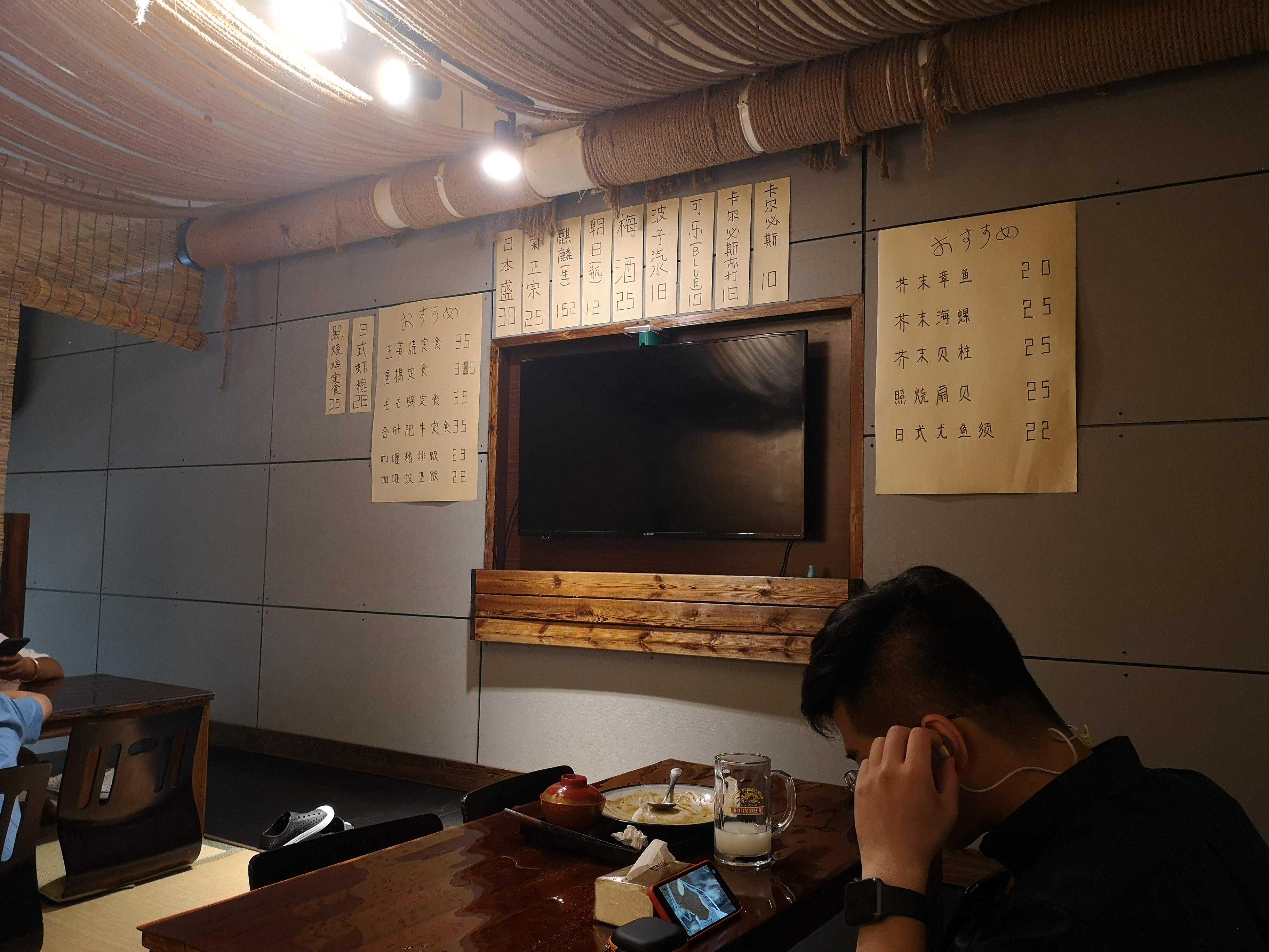 整家店的风格感觉更像是小酒馆,灯光昏暗,店里放着很多店主收藏的小物件,电视上播放着蜘蛛侠。每到饭点店内基本都会坐满食客。