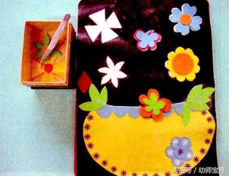 1.观察花瓶上小花的空白轮廓,从盒子里找出与小花空白轮廓相同的花朵