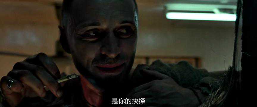 理查德帮助农夫追杀后一批道理的年轻人的时候,有一个理查德的脸部大特写,在烟草叶子的衬托下,理查德像极了一头壕无人性的野狼,龇出利齿,准备撕咬自己的同伴。