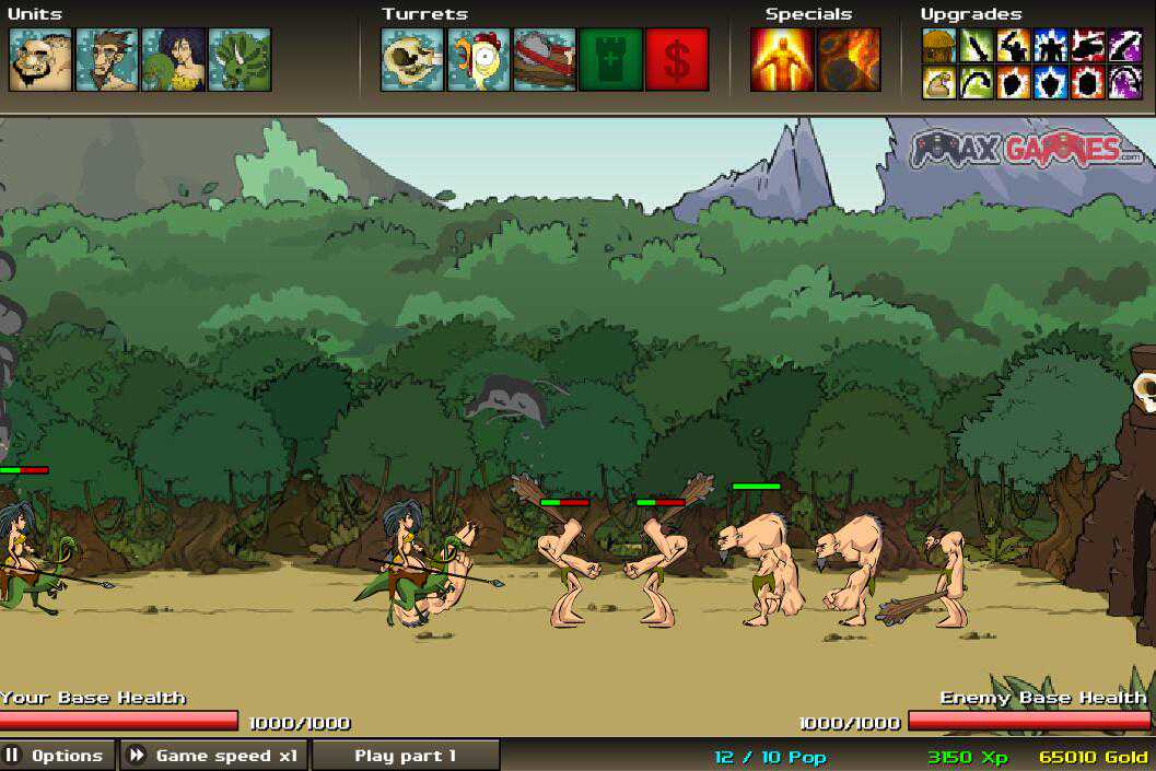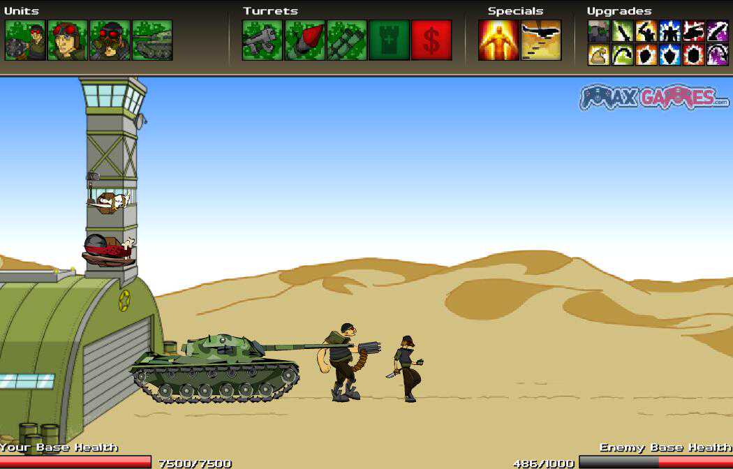 这款游戏可玩性的确很高,但唯一的不足就是没有多人模式,这款游戏主要方式就是建造士兵加固防御与对面的电脑对抗,只要考验的就是玩家们兵种的搭配选择以及金钱的利用。玩家们可以升级科技:从远古的用石器的土著人到中世纪拿着刀剑的骑士,再到现代的步枪坦克,更甚至到未来的机甲战士。士兵的种同样也十分多变,这款游戏真的是消磨时光的好选择。小编提示:打究极模式真的很难,前期撑不住就投降,应为到后面永远也打不完电脑出的兵,根本碰不到他的城池最后就是死局了。