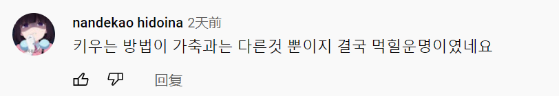 “明明不是用对待食材的方式在养大,最后还是走上了被吃掉的命运。”
