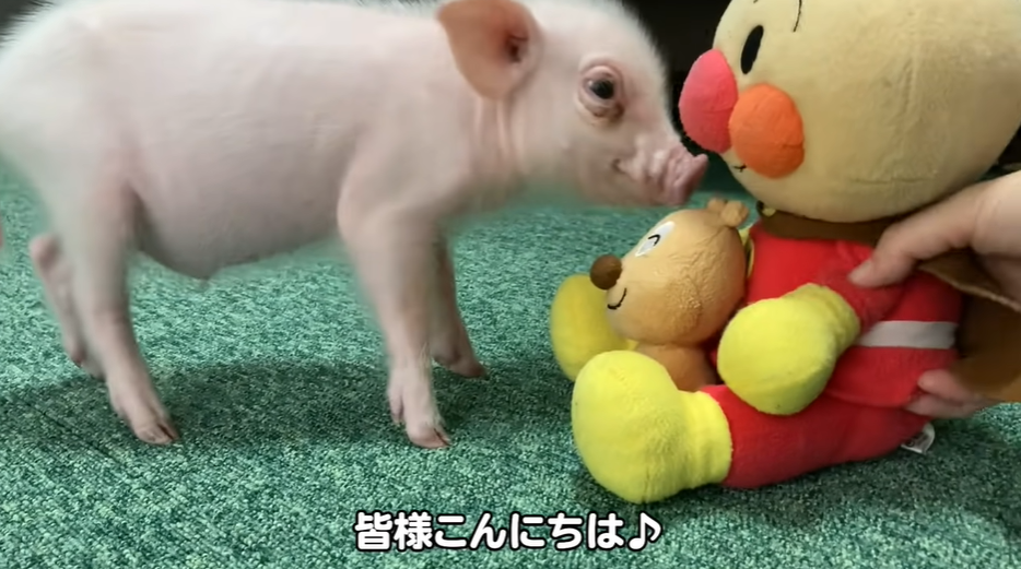 它会亲昵地和主人互动,喜欢用粉嫩的猪鼻子拱主人的手心。
