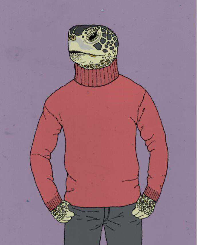 英美人有时会用“卷领”或是“polo领”来描述我们口中的翻领,但他们对其最为准确的叫法是“乌龟领”。因为,一个穿着翻领服装的人和一只从壳内探出头的乌龟其实很相似。而且,穿着翻领毛衣的人的脖子也不会露出。