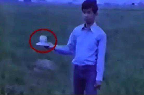 当他们再次靠近蓝光,看到稻田里停落的物体,的确是一个类似帽子的不明飞行物。