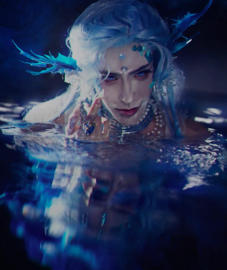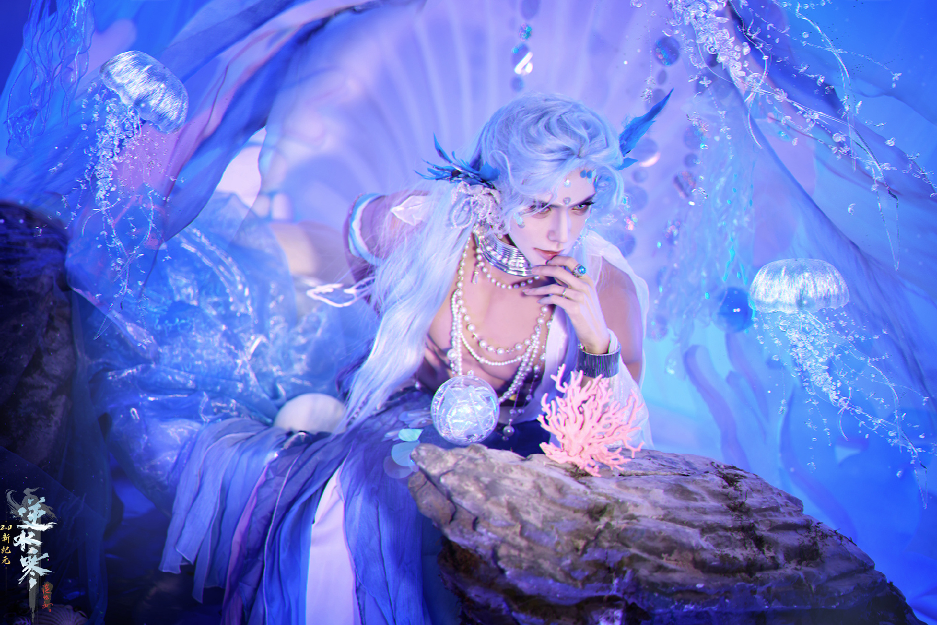 因为《逆水寒》在2.0新纪元赛季服上线了海底世界,带来新流派潮光以及美人鱼系列,所以他们穿着逆水寒时装【灵珠饮月/灵珠海羽】,就是想表达对于新流派潮光的喜爱。