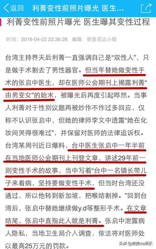 当时为她做手术的医生曝光了她由男变女的变性过程,这位医生也因为泄露病人隐私被罚款了。