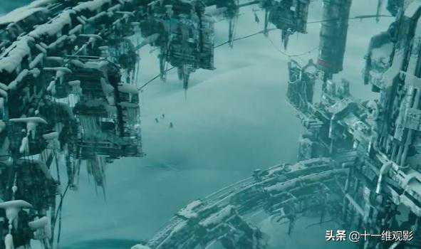 其实这里有个很有趣的问题,那就是地球整个地表都被冰雪覆盖,而且天空还在源源不断的下着雪。大家都知道,雪花是因为水分子凝结而产生的。但是电影中的末世已经下了很多年的雪了,天空也根本看不到太阳,没有水分蒸发的话,怎么可能会一直下雪呢?这一点十一维感觉挺扯淡的。影片中并没有对此做一个合理的解释,而是直接把末世定为了冰天雪地并且一直下雪的样子。