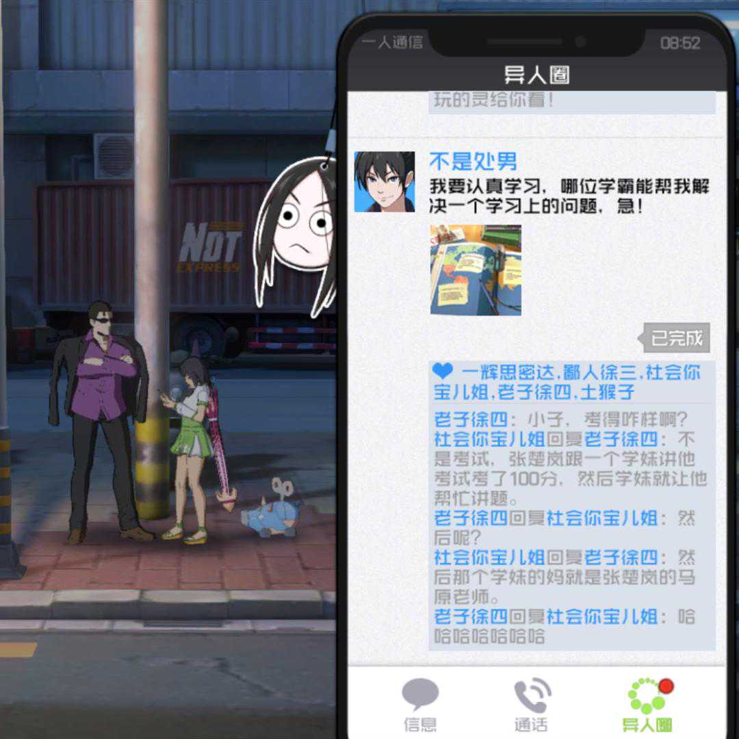 在鹅厂新游《一人之下》手游中,也有和学习有关的彩蛋,而且出现的次数还不少。当玩家等级达到50级后,解锁“异人圈”功能,就像浏览我们自己的朋友圈一样。张楚岚在异人圈里扮演了一个“学渣”的身份,时不时会请教学习上的问题。