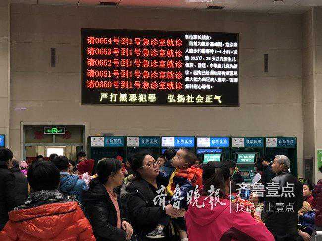 27日上午10时,济南市儿童医院门诊大厅已经人满为患,家长或站着盯着叫号显示屏上滚动的号码,或坐着安抚孩子情绪。医院也在大屏上作出提示:目前为就诊高峰期。急诊病人就诊约需等待2—4小时。发热39.5℃、28填以内新生儿、惊厥、昏迷、中毒患儿优先就诊。