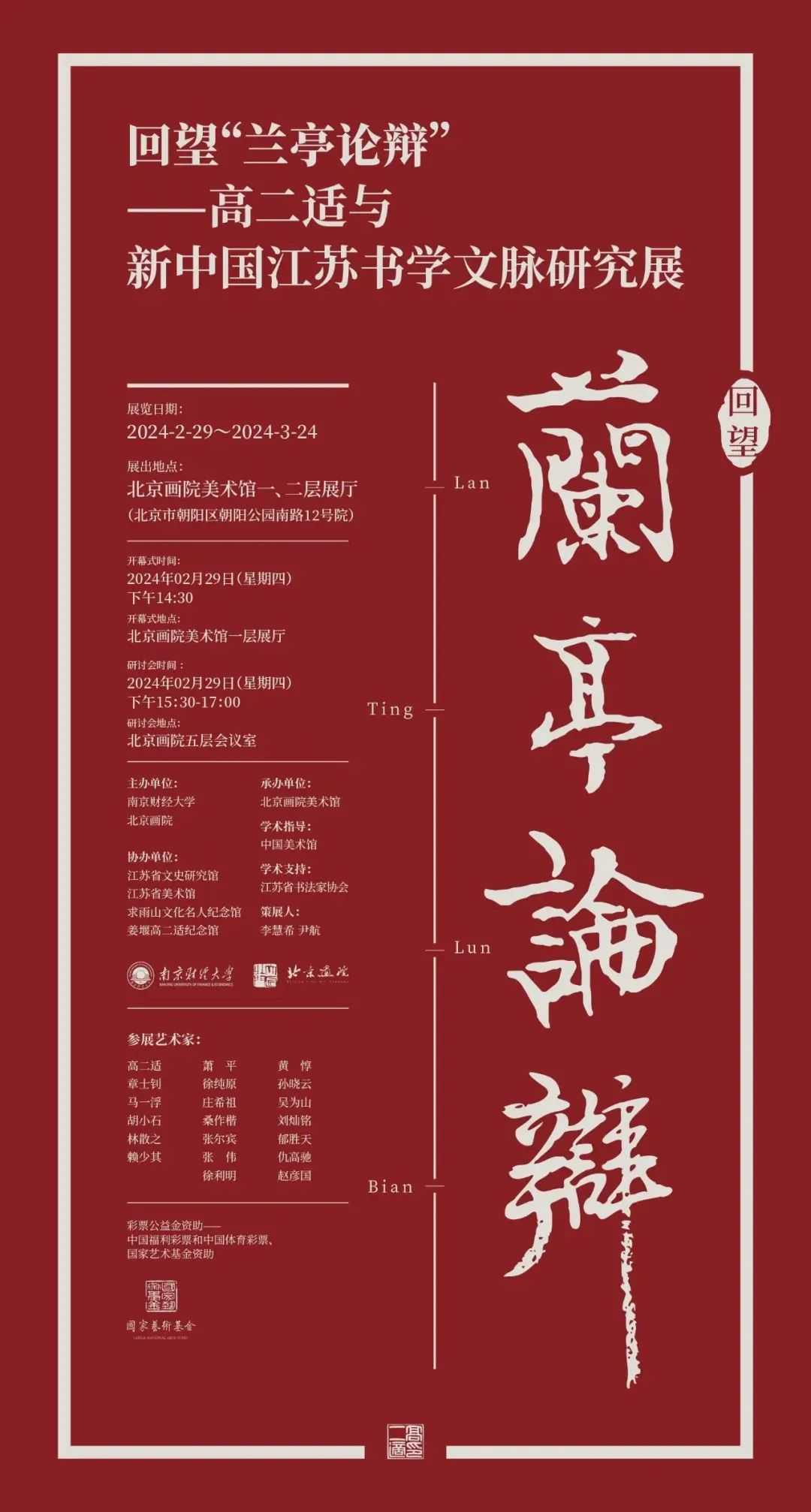 2月29日,2023年度国家艺术基金传播交流推广资助项目“回望‘兰亭论辩’——高二适与新中国江苏书学文脉研究展”在北京画院美术馆开幕。