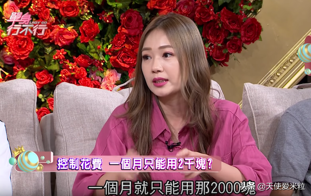 她每个月在悠游卡存2000元新台币(人民币不到500块),规定只能花在自费和便利商店买东西上,如果这个月花多了,就得走路回家。艺人的收入不稳定,有时哪怕没收入,她也要借钱存起来下个月还。