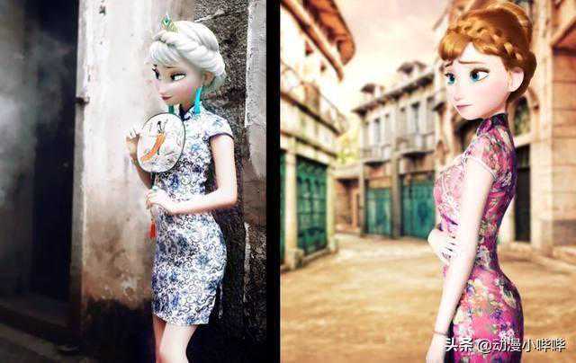 说道换装秀,怎么少得了充满我们中国传统女性特色的旗袍呢。一袭青衣裹身下的冰雪女王艾莎,不仅凹显出美好的曼妙身材,这手持圆扇站在古巷中的样子,更是有着绝代风华,不染纤尘的气质,端庄大方之余,更是让人感觉充满那种古色天香,媚态横生的味道!相比之下旁边的穿着紫色旗袍的妹妹安娜,小哔认为虽很有大家闺秀的风范,但比起姐姐迷人的气场来说还是差了那么一点,真是没有对比,就没有伤害啊。