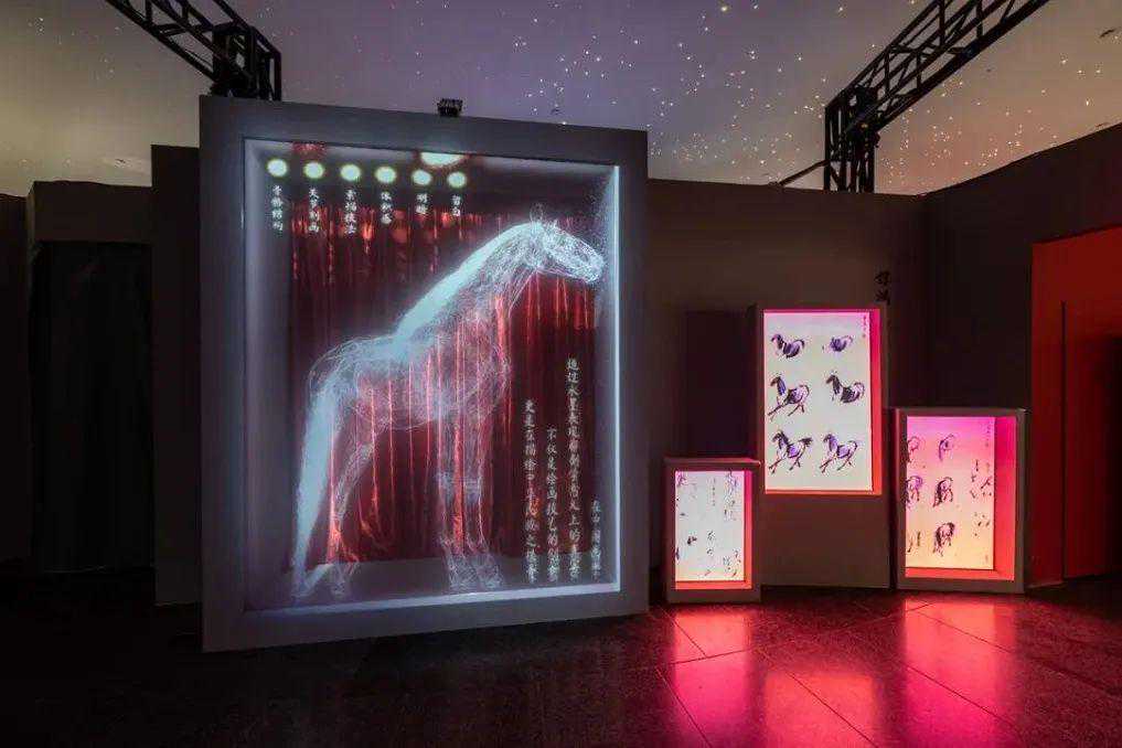 看徐悲鸿笔下的骏马狂奔在广阔的大地,惊了枝头的喜鹊,四散而飞;跟着张大千笔下的高士,卧游于山水瀑布之间,游走于浓墨重彩之境;走近齐白石理想生活的山居之中,体会文人世界渔樵耕读之乐。去中华世纪坛,在“丹青望河山”齐白石+徐悲鸿+张大千+天津博物馆藏三大师精品力作真迹+数字画境展览中,体会一幅幅书画真迹带来的历史积淀,也在一幕幕光影画境之中,沉浸式感受丹青艺术的科技之美。