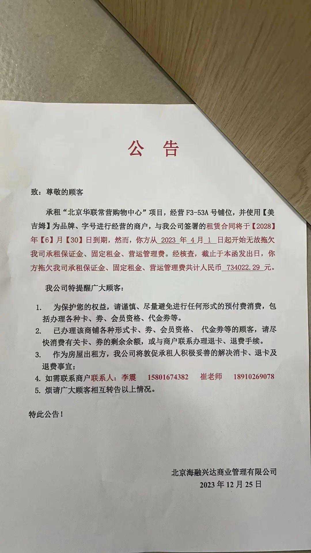 当所有自己能做的工作都已经做完,大家发现,商场并没有在维权这件事上主动采取任何有效措施,甚至没有公布美吉姆是否拖欠房租的信息。