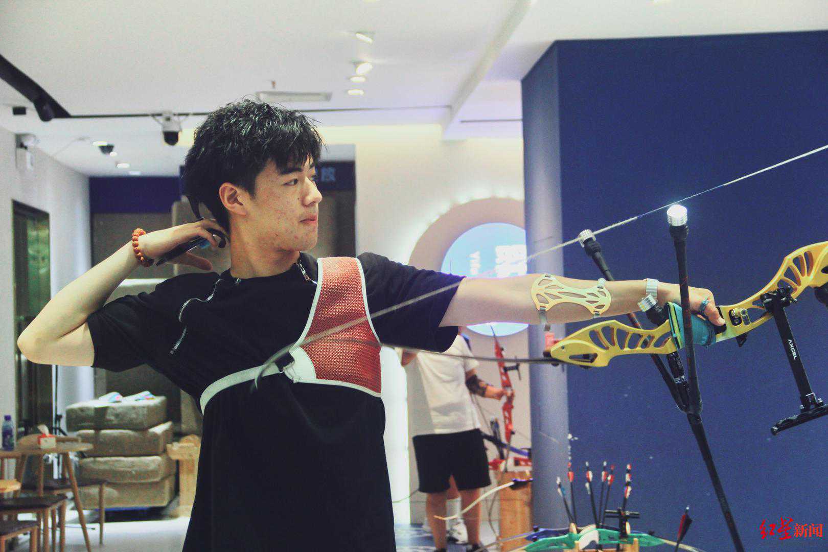 叶浩今年才18岁,是成都市射击射箭运动学校的学生、国家一级射箭运动员,获得过四川省射箭锦标赛男团体第一名、个人排名第三名等优异成绩。利用暑假时间,他来到射箭馆打暑假工。在他的印象中,成都与射箭运动结缘于上个世纪80年代:“我的教练的教练,名叫李玲娟,她获得过第二十三届奥运会银牌。”