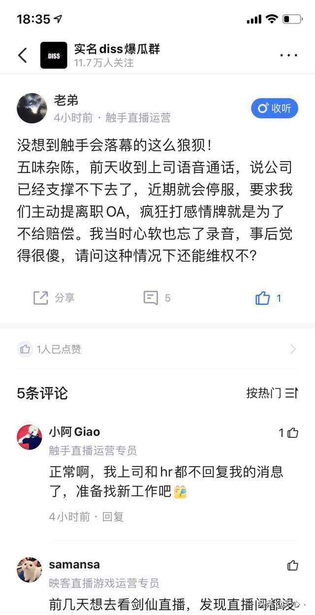 如今触手内部的主播与员工也在不断爆料平台倒闭的消息。