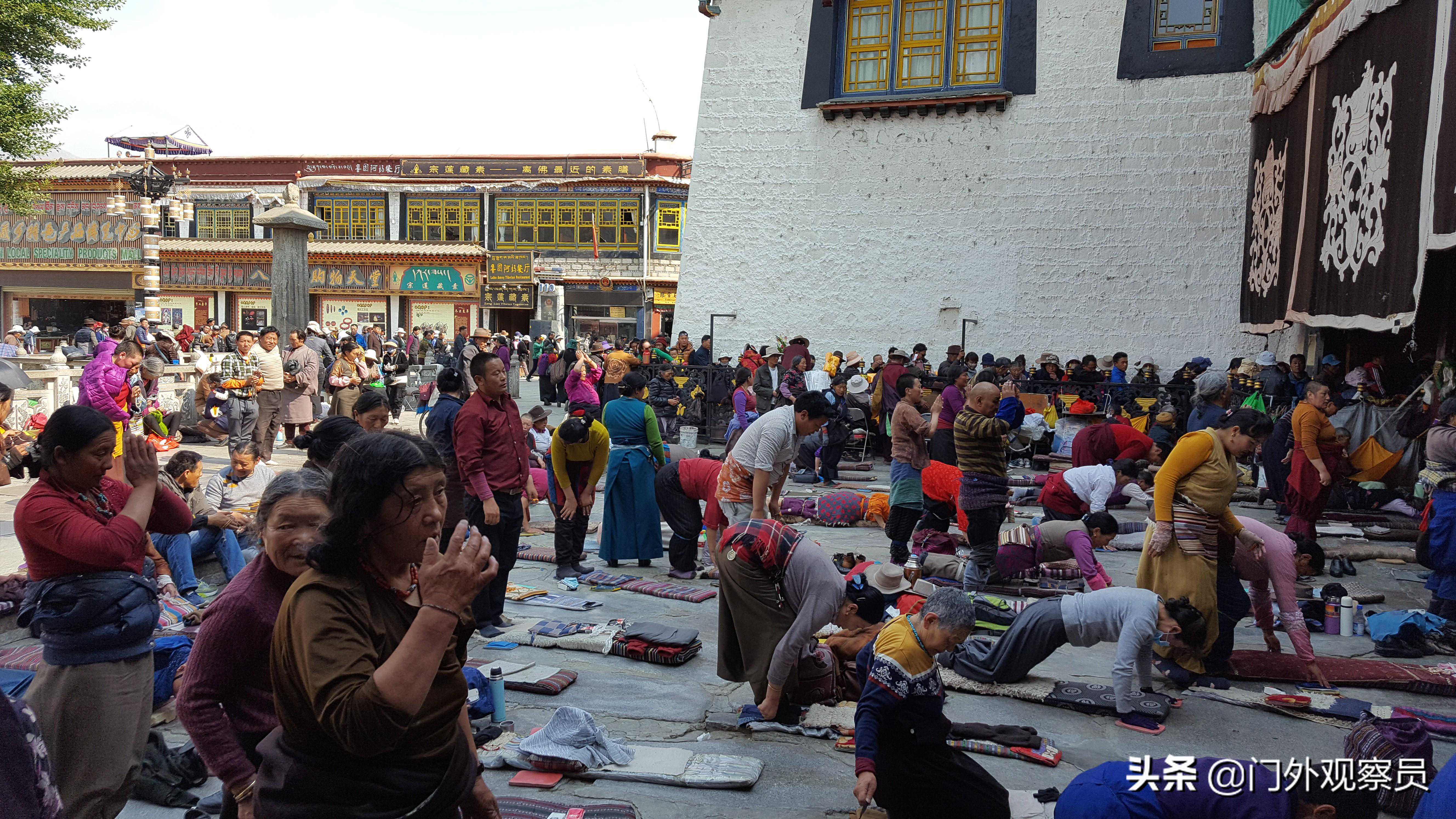 来大昭寺的藏民主要是三件事,广场上磕长头,围绕大昭寺转寺,进寺添酥油拜佛。