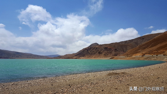 褐色岩石裸露的山体,一条蜿蜒曲折的黝黑公路,像一条腰线和谐完美地搭在了山体上,苍凉中蠕动着活力。羊卓雍错,三大圣湖之一,离拉萨最近。蓝色的湖水,褐色的山体,不知是谁装饰了谁!