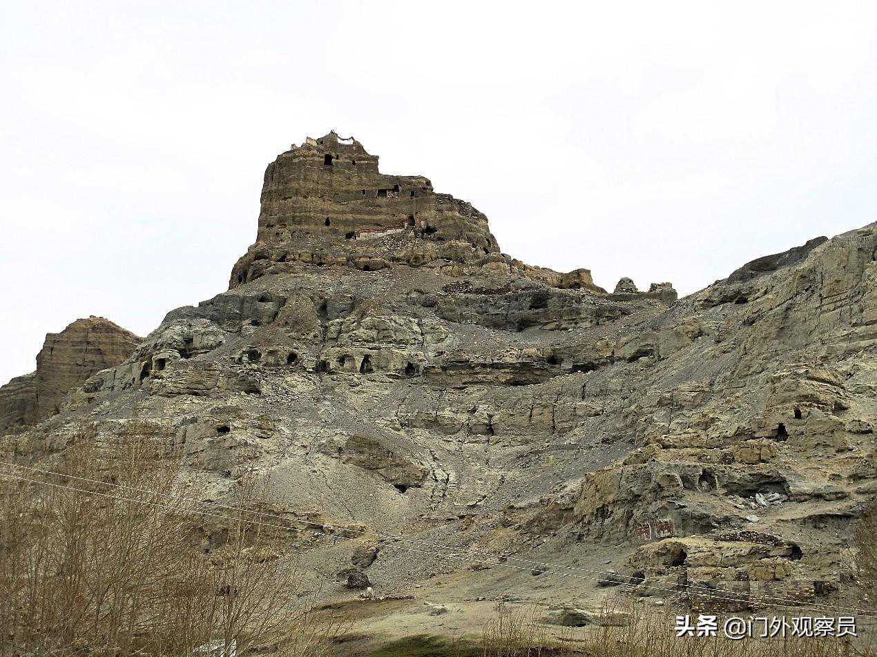 东嘎遗址我们没有特地去寻找,村口的村民直接就把我们指引到了两公里以外的皮央遗址。就在村口的另一面,我们转身一望,似乎又看见了扎布让古格王宫遗址。洞穴、碉楼,集寺庙与王宫于一体的一座依山遗址拦截了我们的目光。虽然残破、坍塌,但布局气势不凡,估计不是古格王的行宫,就是哪个亲王的王宫,或者王妃的后宫。应该不是传说中的扎西曲林寺吧?