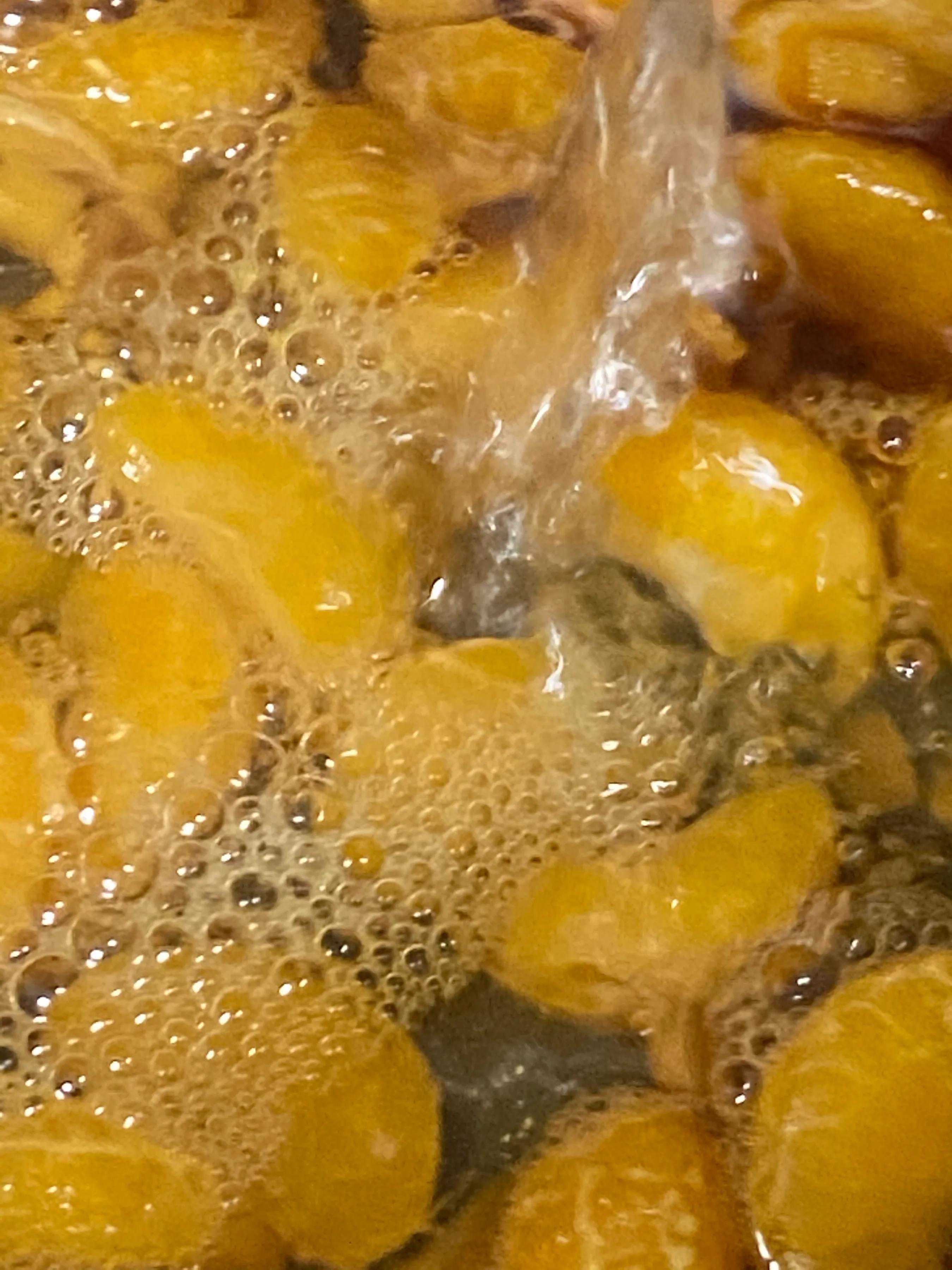 之后,关小火加盖焖煮,让姜糖液能够渗进果肉里!