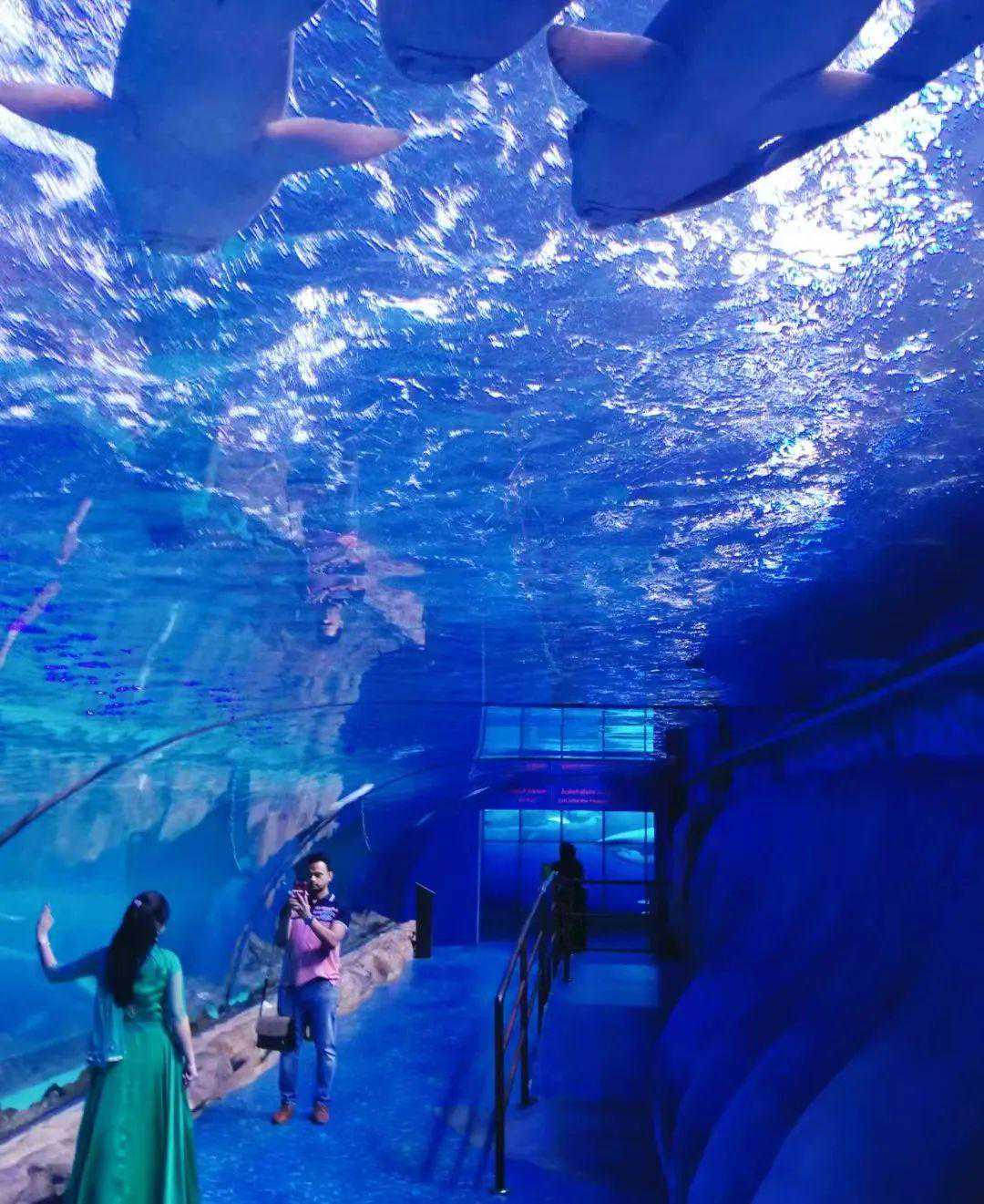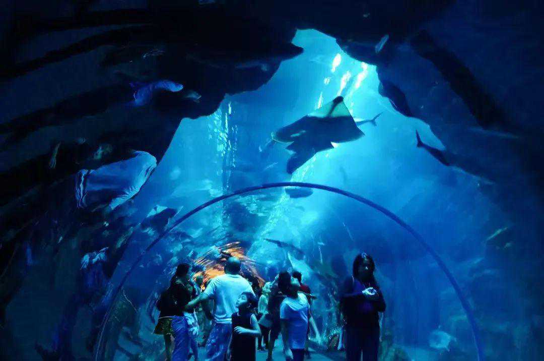 步入半弧形的海底隧道,海龟、蝴蝶鱼、魔鬼鱼,成群结队的鱼群在珊瑚中自在穿行,鲜艳缤纷的色彩,治愈你日常生活中的焦虑与压力~