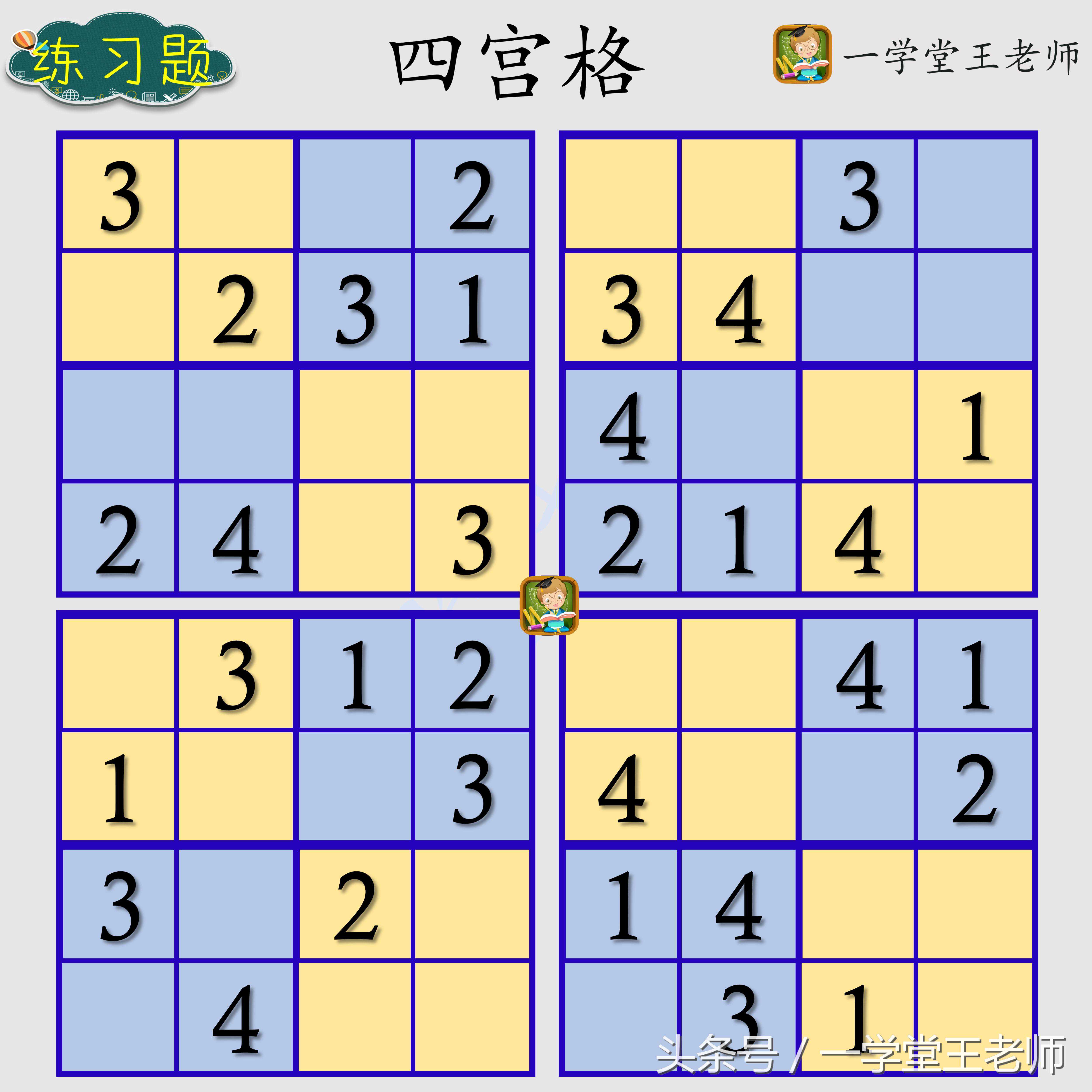 如果有难度,也可从四宫数独开始学习,4×4方格,1~4四个数字。