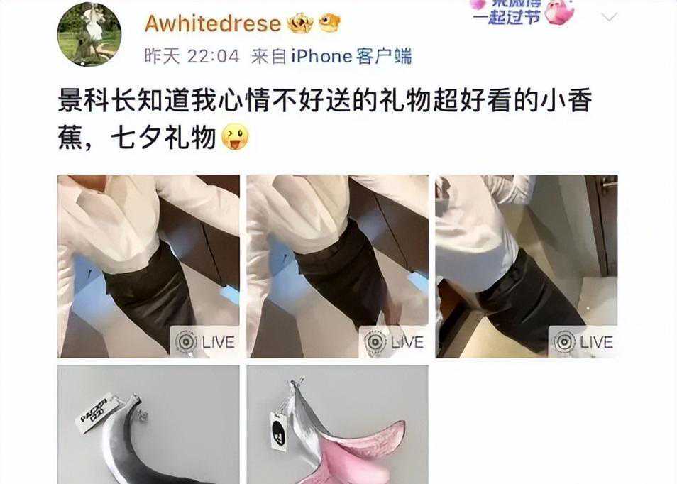 一开始,她在社交媒体上晒出了一份特殊的七夕礼物。这份礼物是一个看似别致的小水果,但实际上是一个成人用品。在文案中,她声称这是景科长送给她的礼物,以表达对她不佳心情的关心。这个文案充满了双关和不少的调侃。