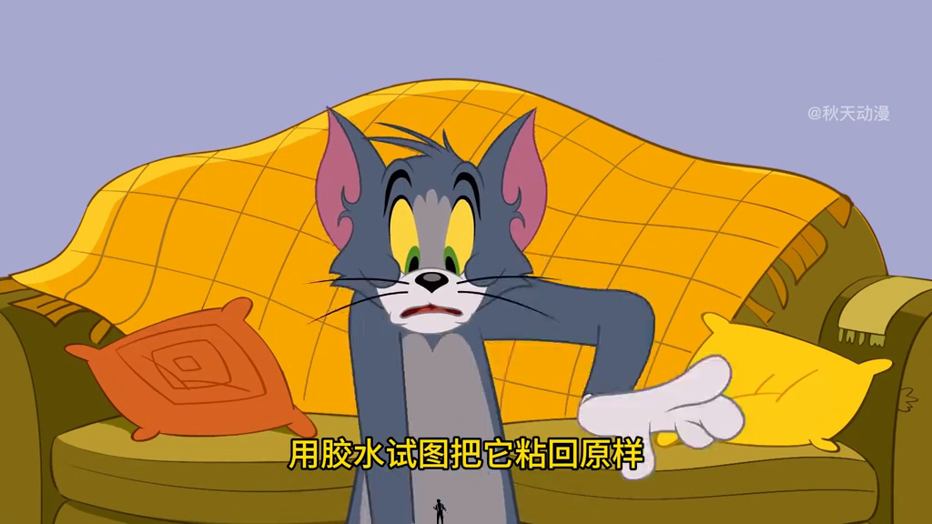 汤姆见势不妙赶紧出去寻找,没想到却看到了玫瑰花被摧毁的一幕。汤姆吓得赶紧捡起地上的玫瑰花碎片,接着就火速跑进屋里用胶水试图把它粘回原样,然而并没有什么卵用。