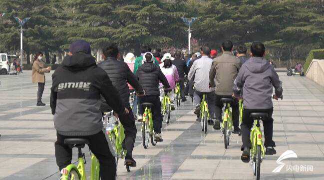 春暖花开,阳光明媚。随后,数十位骑行爱好者骑着新款公共自行车出发,一起参加春季文明骑行活动。他们在骑行中收获快乐,享受美好春光。