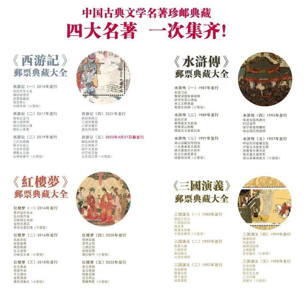 至此,历时44年的四大名著系列邮票今后不会再有了,全系收官,不再发行。