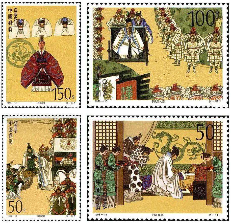 《三国演义》五组邮票分别发行于1988年、1990年、1992年、1994年和1998年。