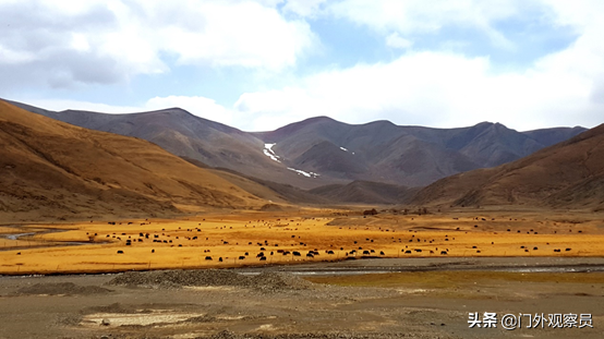 孤寂、荒凉的天地间,黑白相间的羊群,为高原增添了不少生机。没有生命的地方,更显生命力的强大!阿里、羌塘、可可西里这些无人区,高寒缺氧,人类难以生存,但对于野生动物来说可就是天堂了,因为没有人,动物也就没有了最大的天敌。