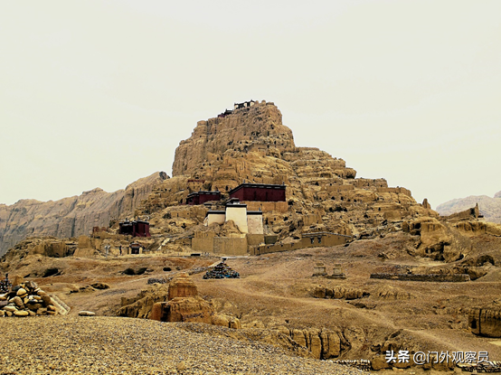 王城根下,通往干尸洞的路上,有一个姑且称作小建筑物的遗址,看见它的第一眼,不用思考,就知道那是冈仁波齐——看来微缩景观的历史至少可追溯到一千年前的西域高原。由此也可见神山的历史地位。正是这座“西迁”至王城下的冈仁波齐,守护着古格王朝延续了700年;也正是它欲与王城试比高的气势,导致古格王朝仅存在了700年。这惟妙惟肖的仿制冈仁波齐,与坚硬而倔强的古格遗址一样,虽历经岁月的沧桑,风雨的侵蚀,如今依然孤独而顽强地矗立着,似乎向后人传递着探究传奇古格的密码。