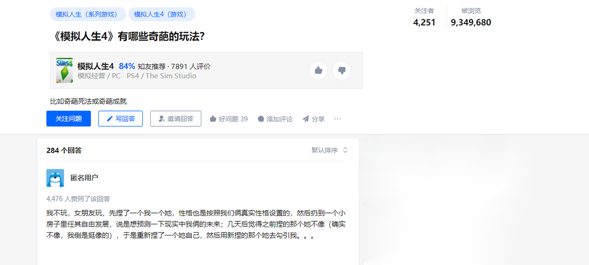 虽然《模拟人生》相比《我的世界》并没有那么自由,但其高清美式画风,可玩性极高的模拟系统,以及海量的官方DLC等内容,让玩家可以在游戏中深度体验与现实生活不一样的新人生,事实上,自《模拟人生》出来后,各种奇葩玩法层出不穷,其中不乏令人捧腹的有趣玩法,感兴趣的玩家可自行检索。