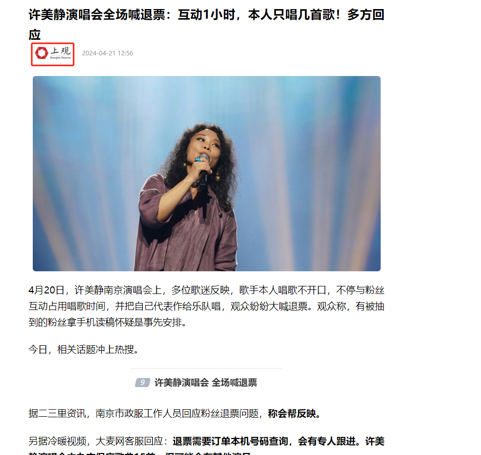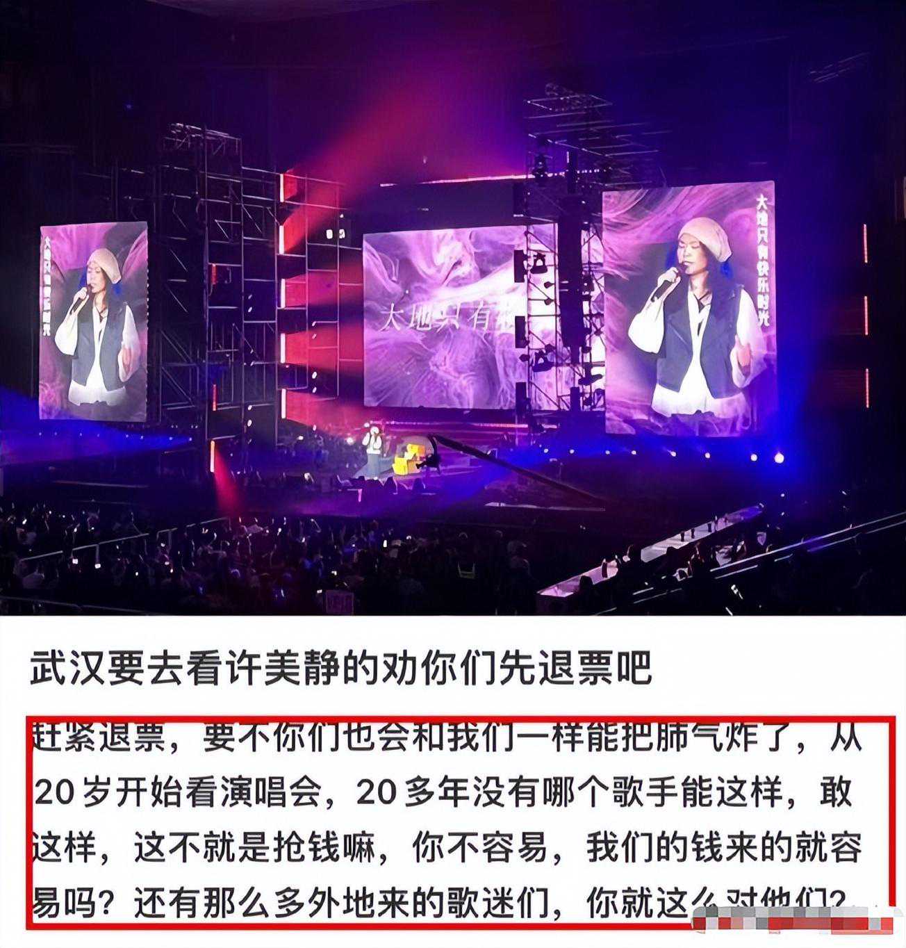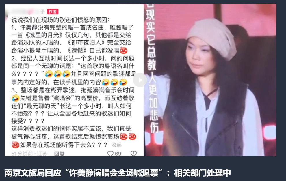 有粉丝不满,直接现场喊退票,许美静的经纪人还说不想唱就走。