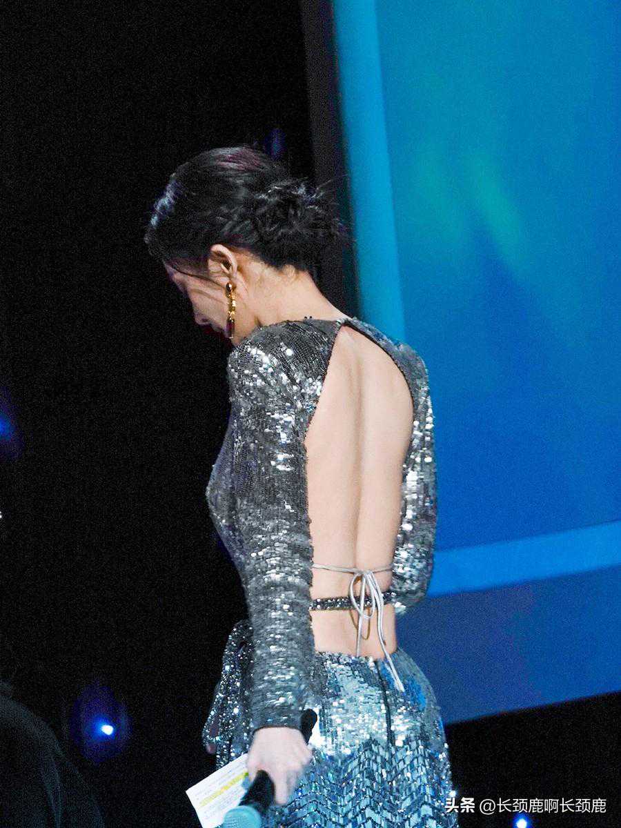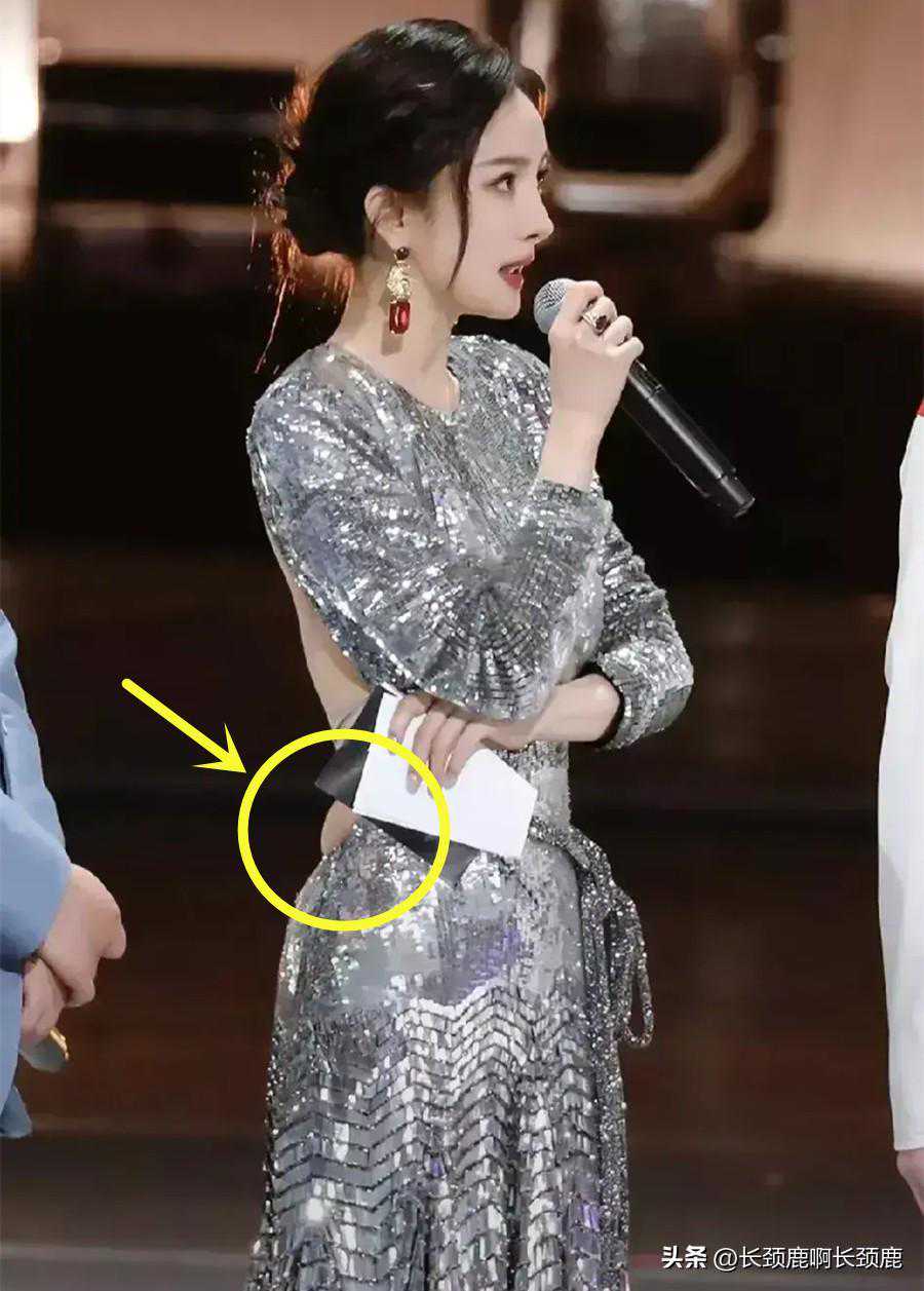 其实杨幂所穿的礼服后背是镂空的,用一条细丝带勒住后腰部位以固定整件衣服,这样一来不容易走光。整体看杨幂的背部是非常光滑的,但是在做某些动作时,背部肌肉不免就会勒出痕迹,这样也能被称为“赘肉”?