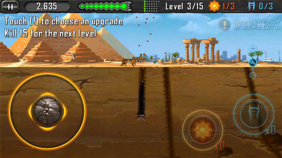 3、在这款游戏中,玩家将扮演一个让人感觉到恐惧的地下食人虫,不断地钻出地面,来吃掉地面上的人和动物。