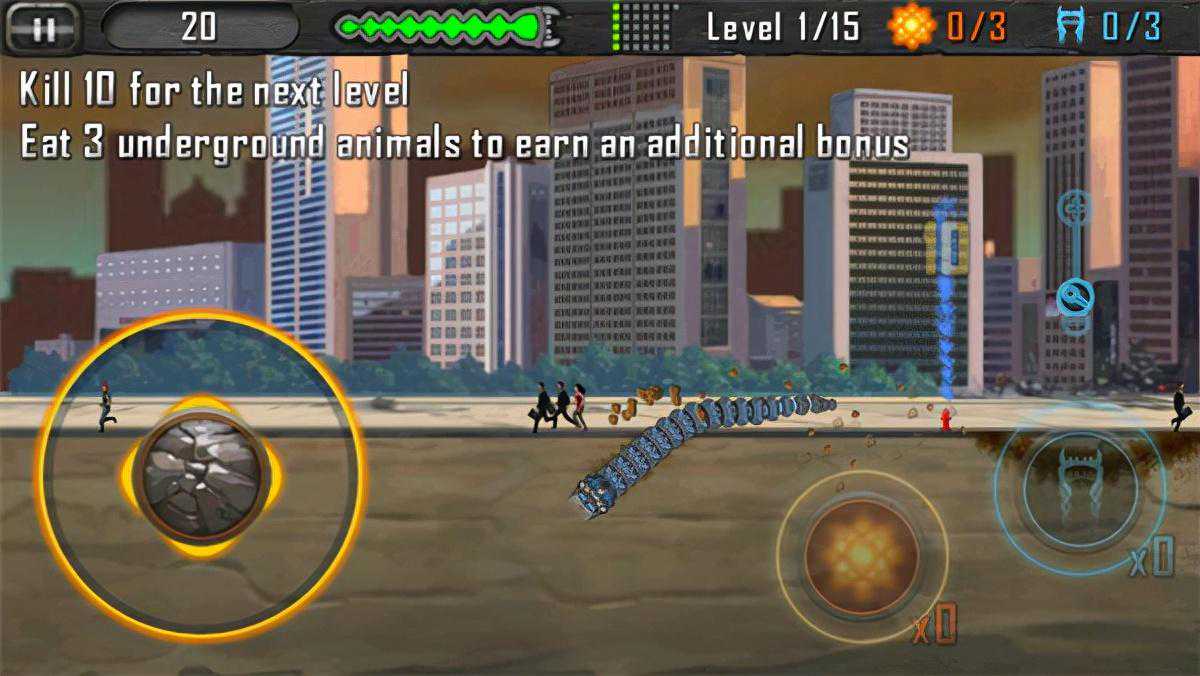 2、游戏中你将扮演一个恐惧的地下食人虫,你需要不断地钻出地面,来吃掉地面上的人和动物。