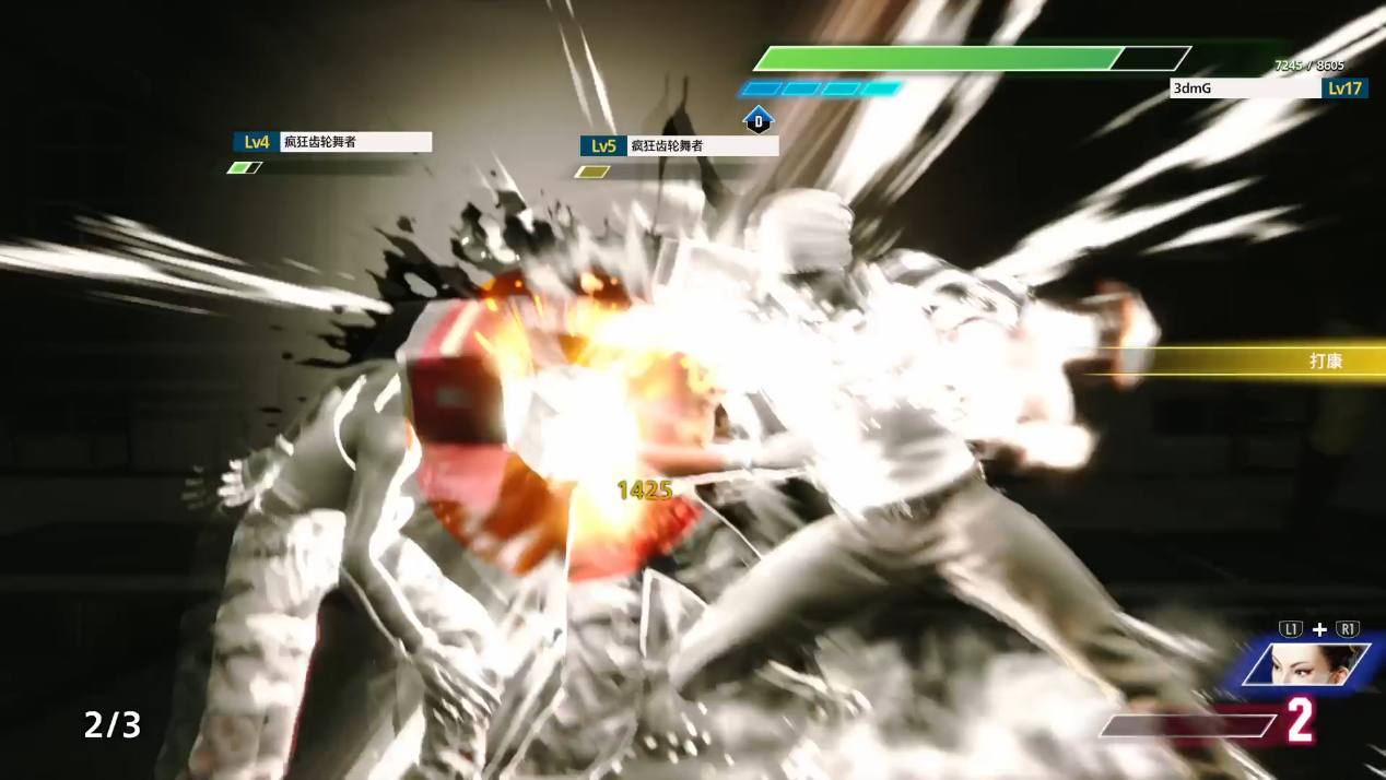 而“现代模式”虽然能让你快速掌握对策思路,但在连段经验的补足方面非常不灵活。首先,“现代模式”下玩家只有轻中重3种攻击按键,无法选择具体的拳脚,导致某些角色无法主动使用性能更强的特定起手式,进行摸奖。同样的,通过瞬发插入的必杀技也都是中攻击必杀,无法精确选择出招位置和位移距离;同时,按下辅助按键,并连按轻、中、重攻击释放的三种连段,其模式相对固定,中间缺乏变招,很容易被对手预读,除非夹杂本作主打的斗气冲锋系统和斗气迸发系统,否则很难形成有效压制。