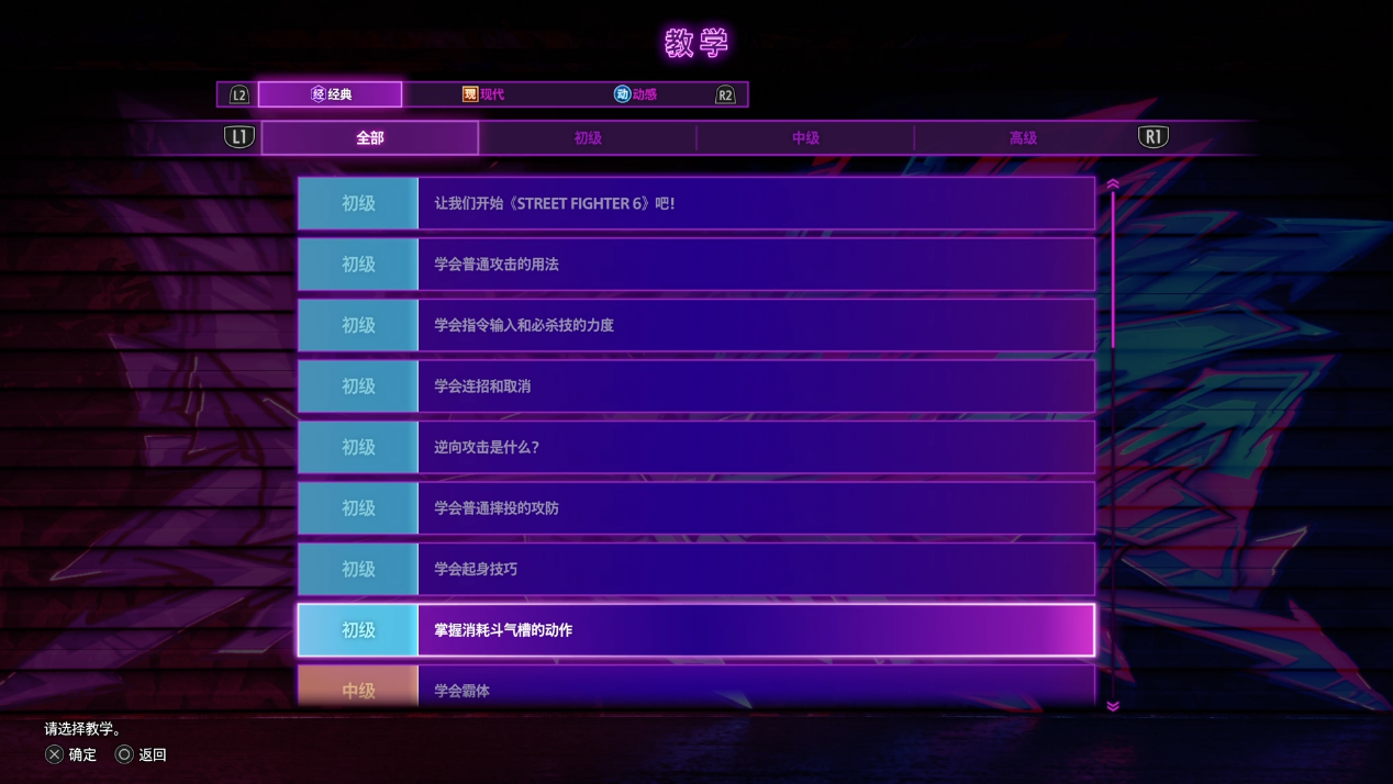 具体而言,这些疏浚工程包括但不限于:一个可供玩家自由探索的半开放剧情模式,也就是“世界巡游”;一整套基于四向按钮与R2辅助键的现代操作模式;最后,才是极度新人友好的内置角色指南和连段挑战。先不提接没接触过“街霸”系列,哪怕是完全没有格斗游戏基础的玩家,也可以直接从“世界巡游”开始上手,从入门到挨打,一气呵成。