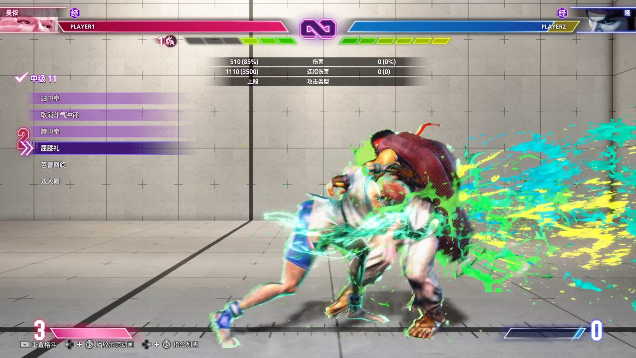 至于PVE战斗的难度,颇有些幼教老师的意思。卡普空非常贴心地设计了不同类型的对手,让玩家熟悉打击、飞行道具、投技等等攻击模式,以及针对这些攻击的对策与确反方法。当对手身上出现白光提示时,玩家可以抓准攻击时机,通过确反对手的收招硬直,来达成本作系统强调的“确反康”效果,快速击晕单机模式的对手。