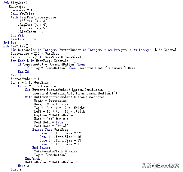 在前面说了很多其他的VBA使用方法,今天要和大家介绍的是利用VBA代码写出来的一个小小游戏,也是我们常数的数字推盘小游戏。