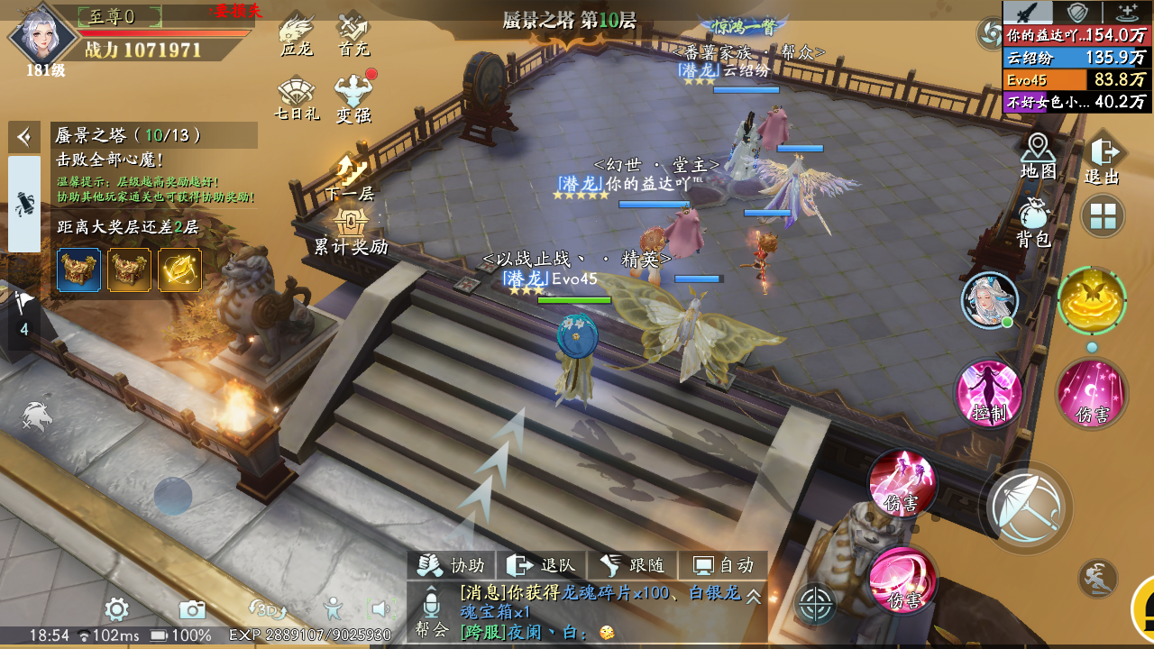 ◆战斗场景选的是常见玩法“爬塔”,从队友放技能到BOSS攻击,双方打的倒是很激烈,满屏全是技能效果,按理说每个职业单独拿出来展示都很漂亮,技能效果也不错,但凑到一起就是灾难了,也是画质开到最高后的坏处;