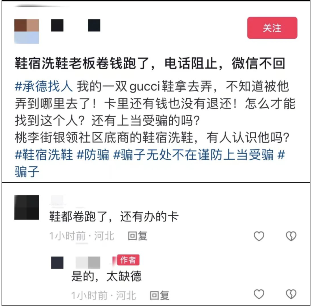 12月,河北承德市,桃李街银岭社区的洗鞋店“鞋宿洗鞋“一夜闭店,老板关门前还顺手牵走了客人们留下的鞋子。