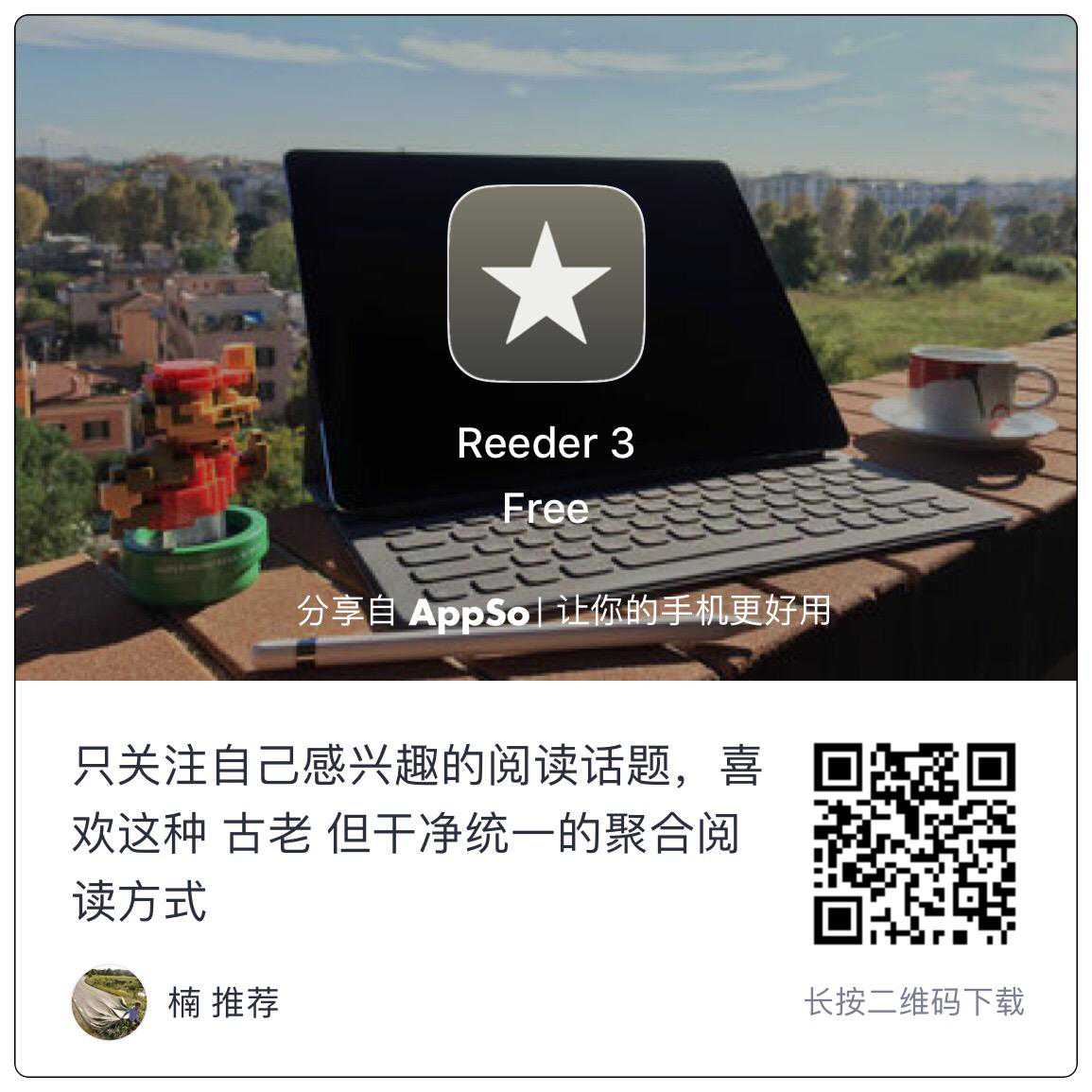 老牌RSS应用,可以按照自己的需求添加订阅源,打造自己的阅读库。支持单独添加RSS源,也支持包括Feedly、Fever等在线RSS服务。适用于iPhone、iPad、Mac同步,全平台今日统统限免,尚未加入内购项目。iOS版本原价30元,macOS版本原价68,需要请尽快下载!