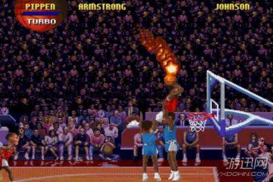 早在1993年,NBA在早期的MD时代就有一个比较完成的游戏,那时候正是乔丹推广了篮球运动到全球的时候,而游戏又是在看完比赛之后对于比赛最好的回忆,游戏本身很有意思,对于一个平面的篮球游戏来说,游戏发挥了最大的想象来完成这个游戏,无论是盖帽还是三分射篮,无论是三分线还是在空中飞翔扣篮,游戏都能很好的表现出来,而场边的观众也是会根据你的动作难度来产生反应--冷静或者欢呼,NBAJAM是90年代里面运动游戏的佼佼者--华丽的,有趣的,乐趣的,还很容易跟朋友一起双打,这个游戏也成为了未来NBA游戏的雏形。