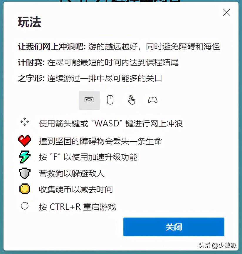 既然你Google的Chrome都有个小恐龙,那我微软自然也不会落后。这款游戏只能在基于Chromium的Edge版本上运行,同样是离线小游戏。