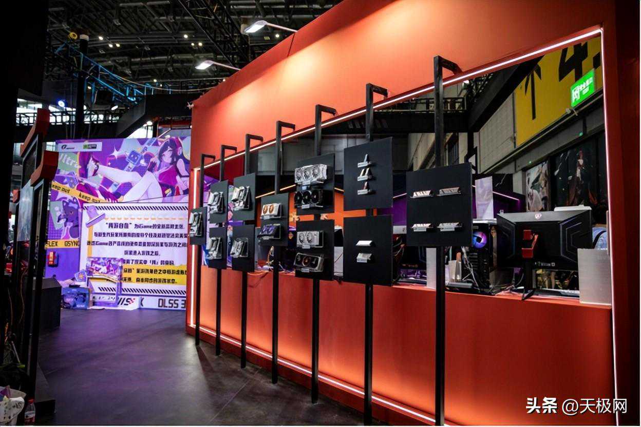 在会场的另一端,坐落着一面COLORFUL的硬件产品墙,其中包含iGame的旗舰黑白双色的显卡Vulcan以及次旗舰产品Advanced,还有波普艺术风格的Ultra。在产品墙当中还展示近期发售颇受欢迎的COLORFIREMEOW系列猫卡,以及主板及存储类的人气产品。当然在展台当中少不了iGameG-one一体机以及COLORFUL将星笔记本的专属区域,展现了COLORFUL丰富的多产品线生态!