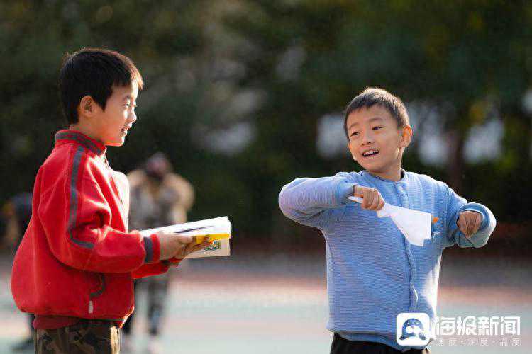 济南市文化东路小学正是其中之一。玩纸飞机、做小风车、操场上跳绳……近日,记者在文东小学操场上看到,低年级的孩子聚在一起玩纸飞机,中高年级的学生喜欢在操场聊聊天、走一走,放松一下心情。