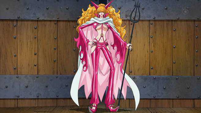 海底大监狱狱卒长,推进城LEVEL4“灼热地狱”四只狱卒兽的指挥官,留着卷曲金发,刘海遮盖双眼,佩戴蜡烛形状的白色耳饰,身穿极为曝露的桃红色紧身皮衣,口头禅是“嗯~~~”,有着严重的施虐癖好,只要听到遭虐打对手的惨叫声就会变得相当兴奋。